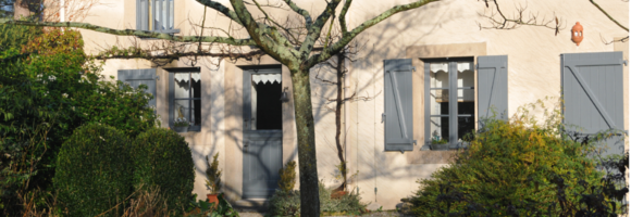 Le devant de la maison exposé sud donne sur le jardin et la chambre d’hôtes.